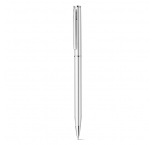 Hliníkové guľôčkové pero s klipom a otáčacím mechanizmom. Modrý atrament.