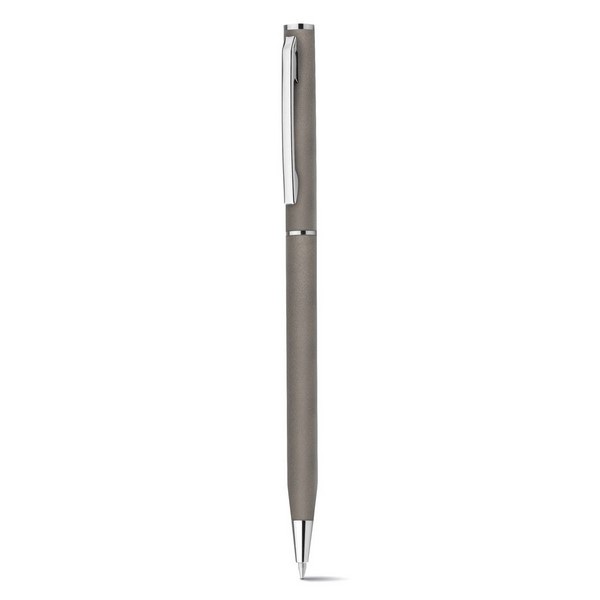 Hliníkové guľôčkové pero s klipom a otáčacím mechanizmom. Modrý atrament.