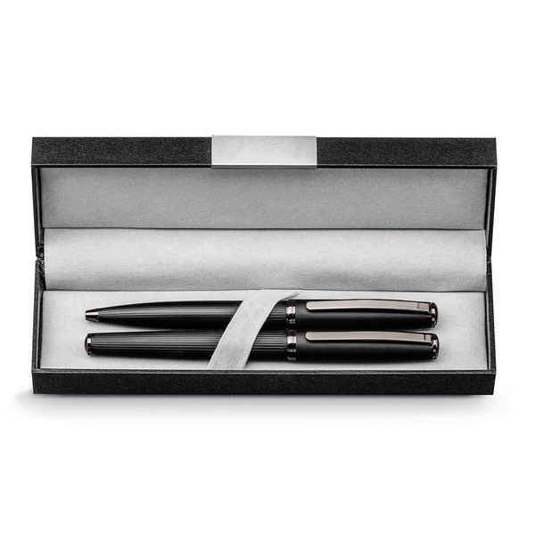 Sada kovového guľôčkového pera a rolleru dodávaná v elegantnej polstrovanej darčekovej krabičke.