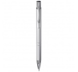 Guľôčkové pero so stláčacím mechanizmom, hliníkovým telom, dielmi z ABS a oceľovou sponou.