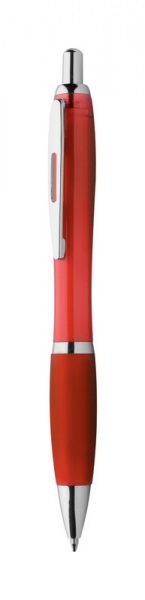 Plastové guličkové pero, farebné telo, gumový grip, lesklé chrómované časti. Dodáva sa s modrou náplňou.