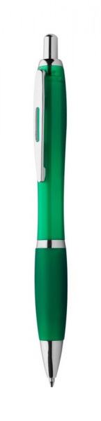 Plastové guličkové pero, farebné telo, gumový grip, lesklé chrómované časti. Dodáva sa s modrou náplňou.