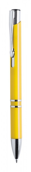 Plastové pero s lesklým klipom a špičkou, s modrou náplňou.