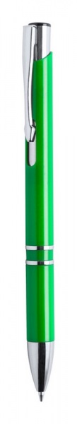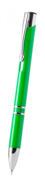Plastové pero s lesklým klipom a špičkou, s modrou náplňou.