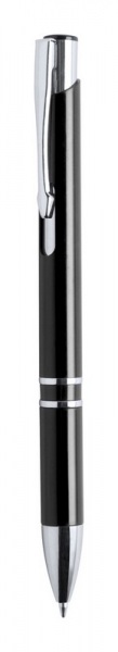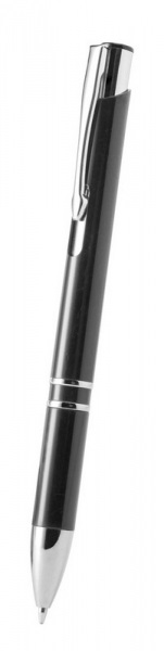 Plastové pero s lesklým klipom a špičkou, s modrou náplňou.