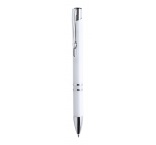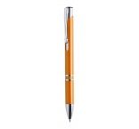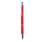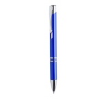 Plastové pero s lesklým klipom a špičkou, s modrou náplňou.