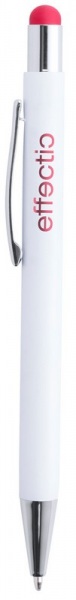 Hliníkové guľôčkové a dotykové pero s pogumovanou úpravou a špeciálnym povrchom pre zrkadlový laser vo farbe stylusu, s modrou náplňou.