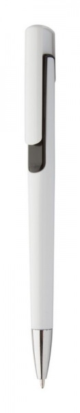 Plastové pero s farebnými doplnkami a chrómovou špičkou. Dodávané s modrou náplňou.