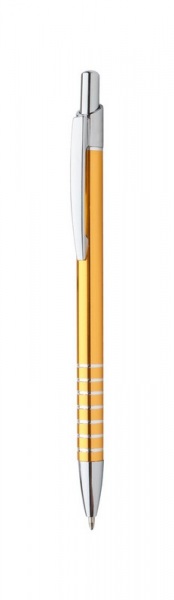 Hliníkové guličkové pero s kovovým klipom a chrómovanou špičkou a vrškom. Dodáva sa s modrou náplňou.