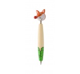 Drevené guľôčkové pero s farebnou hlavičkou zvieratká, s modrou náplňou.