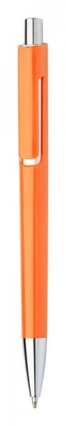 Plastové pero s farebným telom a chrómovými časťami, s modrou náplňou.