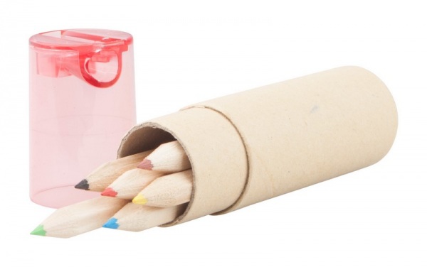 Sada 6ks farebných ceruziek s orezávačom v papierovej škatuľke.