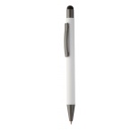 Hliníkové guľôčkové a dotykové pero s pogumovaným povrchom, s modrou náplňou.