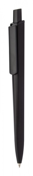 Plastové pero s čiernymi časťami a matnou povrchovou úpravou, s modrou náplňou.
