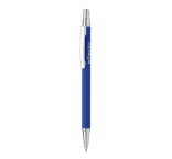 Hliníkové guličkové pero s pogumovanou úpravou a modrou náplňou. Špeciálny povrch pre zrkadlový laser.
