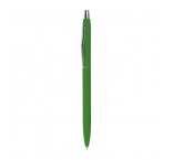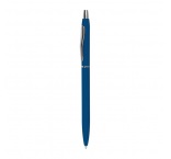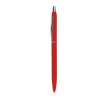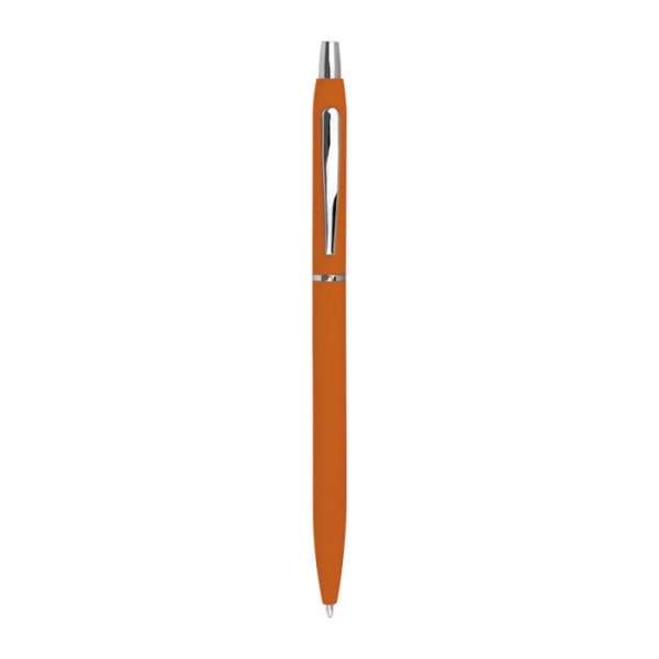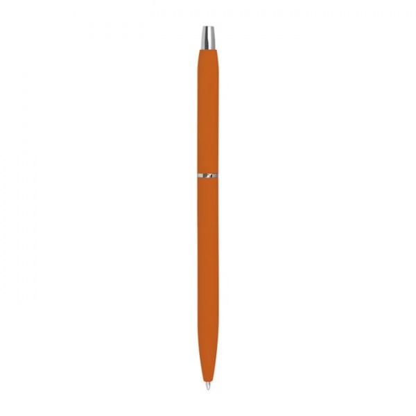 Tenké pogumované kovové guľôčkové pero so striebornými aplikáciami a čiernou náplňou.