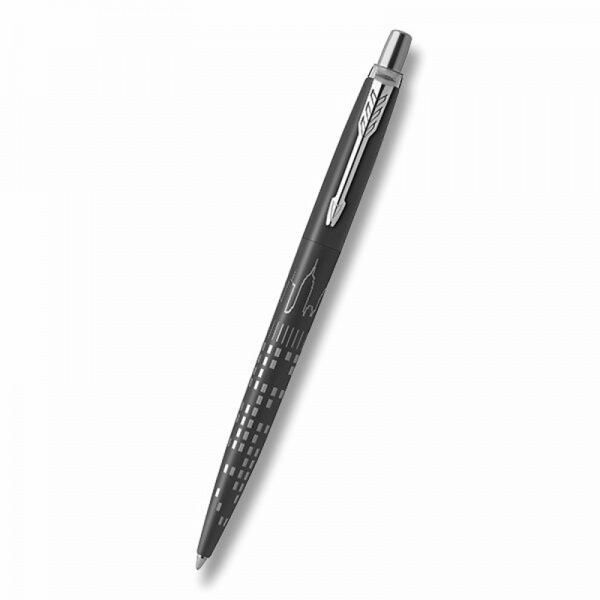 Špeciálna edícia Parker Jotter Around The World. Guľôčkové pero s originálnym dizajnom, mosadzné telo pokryté čiernym lakom. Laserom vyvedený vzor je v dizajne mesta New York. Modrá náplň.
