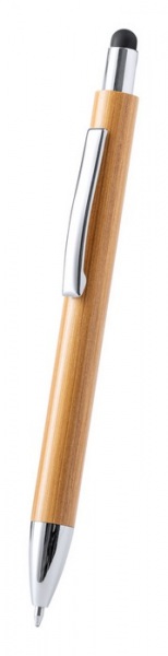 Bambusové dotykové a guľôčkové pero s kovovým klipom a špičkou, s modrou náplňou.