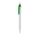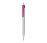 Plastové pero s bielym telom a farebným klipom, s modrou náplňou.