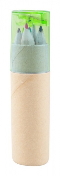 Sada 6ks farebných ceruziek s orezávačom v papierovej škatuľke.