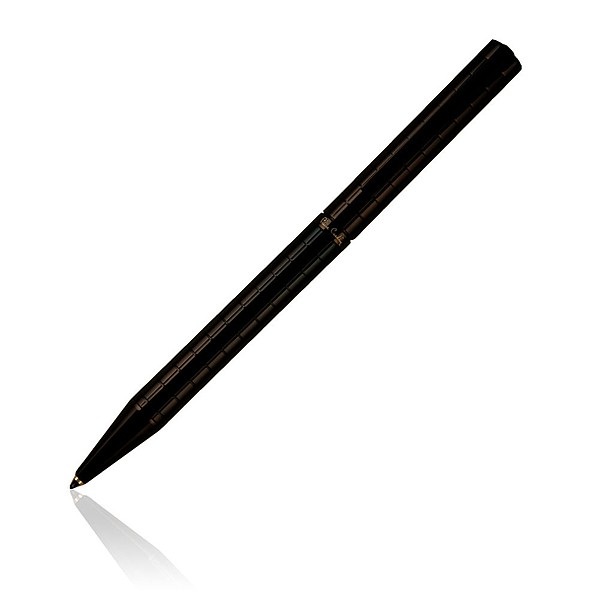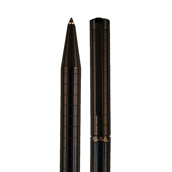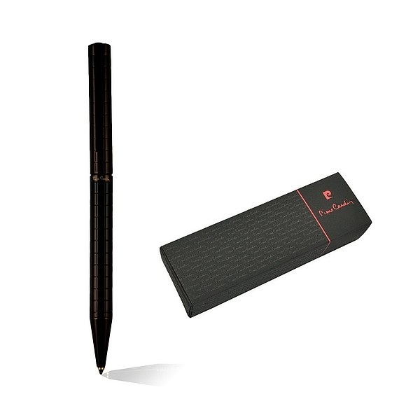 Značkové kovové guľôčkové pero Pierre Cardin s otočným mechanizmom. Telo je zdobené károvaným gravírovaním, obsahuje kvalitnú modrú náplň, hrot 1 mm a náhradnú čiernu náplň. Balené v luxusnej krabičke Pierre Cardin, dodávané s certifikátom pravosti.