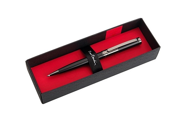 Luxusné kovové guľôčkové pero P.Cardin. Guľôčkové pero má kvalitnú náplň v modrej farbe s hrotom 1 mm a obsahuje náhradnú čiernu náplň. Balené v luxusnej papierovej krabičke P.Cardin. Dodávané s certifikátom pravosti.