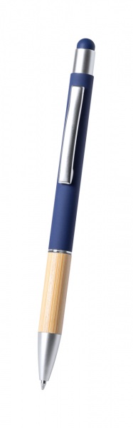 Hliníkové guľôčkové a dotykové pero s bambusovou rukoväťou a matným povrchom. S modrou náplňou.