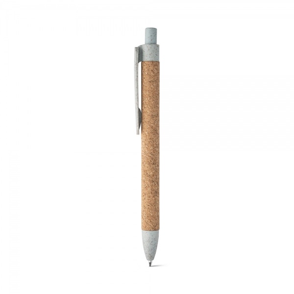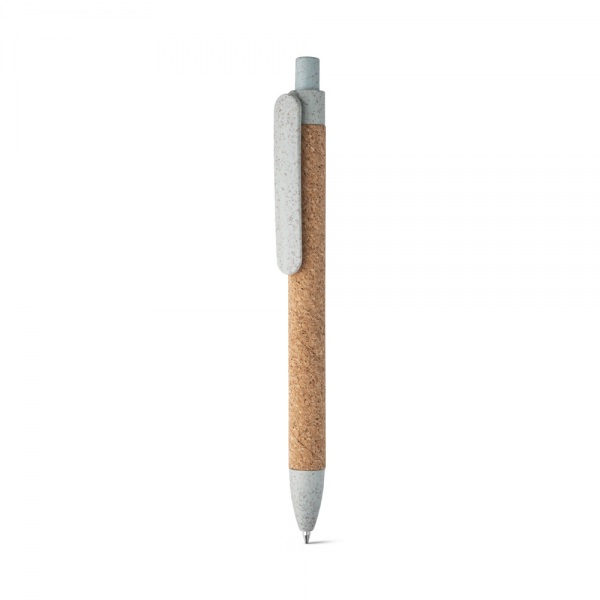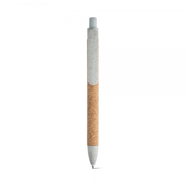 Korkové guľôčkové pero s klipom a farebnými prvkami z vlákna pšeničnej slamy a PP. Modrý atrament.?11 x 140 mm