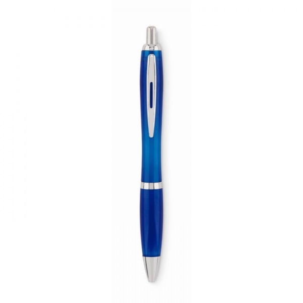 Tlačidlové guličkové pero z RPET. Modrý atrament.