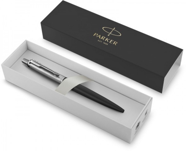 Guľôčkové pero Parker Jotter XL z nehrdzavejúcej ocele. Modrý atrament. XL Jotter je dlhší, širší a ťažší ako originál. Pero zabalené v darčekovej krabičke.