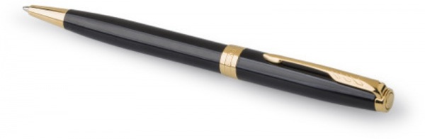 Guľôčkové pero Parker Sonnet z nehrdzavejúcej ocele a lakovanej mosadze s otočným mechanizmom. Čierny atrament. Pero zabalené v darčekovej krabičke.