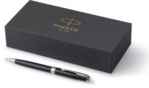 Guľôčkové pero Parker Sonnet z nehrdzavejúcej ocele a lakovanej mosadze s otočným mechanizmom. Darčeková krabička Parker.