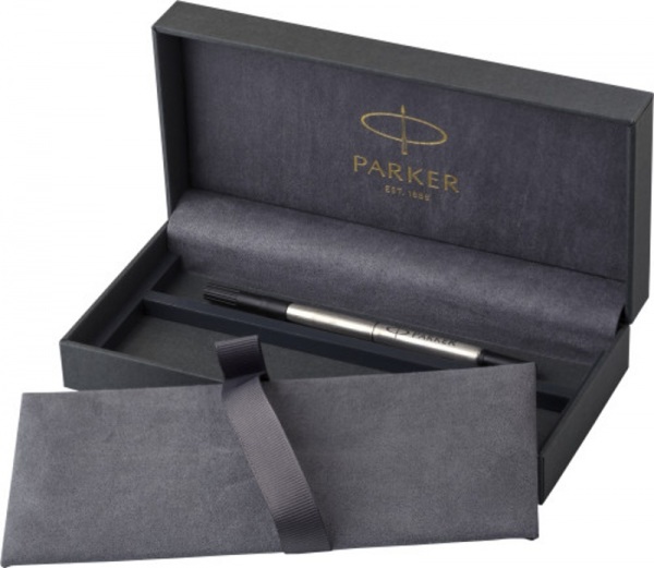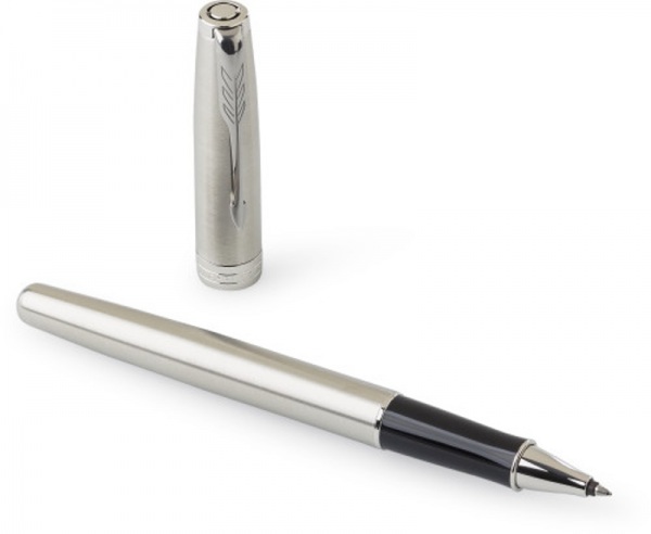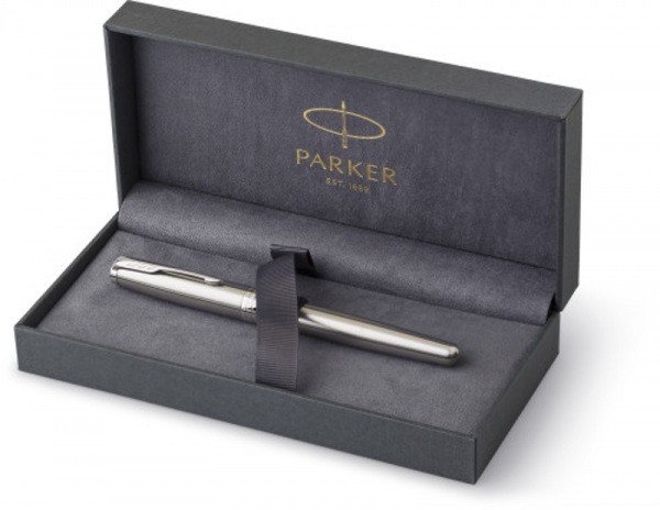 Roller Parker Sonnet z nehrdzavejúcej ocele s uzáverom. Čierny atrament. Pero zabalené v darčekovej krabičke.