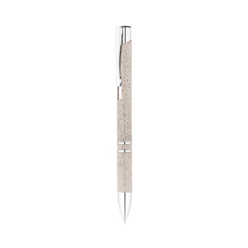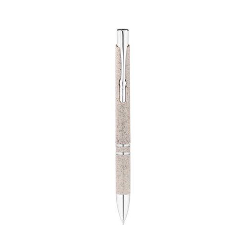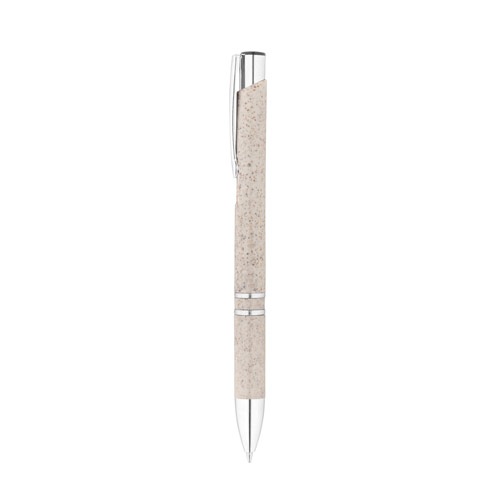 Guľôčkové pero z pšeničnej slamy a ABS s kovovou sponou a lemom. Dostupné v širokej škále farieb. Modrý atrament