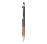 Hliníkové guľôčkové a dotykové pero s úchopom z prírodného korku, matným povrchom valca a dielov. S modrou náplňou.
