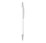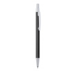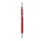 Guľôčkové pero z recyklovaného hliníka s chrómovanými časťami. S modrou náplňou.