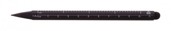 Bezatramentové dotykové pero s dlhou životnosťou z recyklovaného hliníka s hrotom z kovovej zliatiny, ktorý oxiduje papier. Šesťhranné telo poslúži ako pravítko s mierkou 11 cm a 4 palce. Toto pero píše podobne ako ceruzka a navyše je stierateľné.