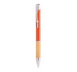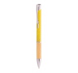 Ekologické plastové guľôčkové pero z pšeničnej slamy s bambusovým úchopom a kovovými časťami. S modrou náplňou.