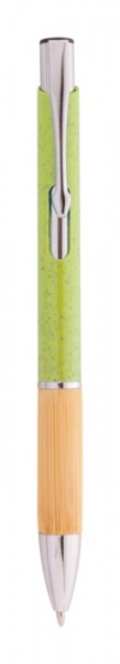 Ekologické plastové guľôčkové pero z pšeničnej slamy s bambusovým úchopom a kovovými časťami. S modrou náplňou.