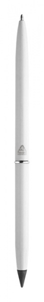 Otočné guľôčkové pero s modrou náplňou z recyklovaného hliníka so špičkou z kovovej zliatiny, ktorá oxiduje papier. Toto pero píše podobne ako ceruzka a navyše je stierateľné.