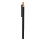 Guľôčkové pero z recyklovaného hliníka s bambusovým tlačidlom. S modrou náplňou.