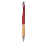 Plastové dotykové guľôčkové pero s otočným mechanizmom s bambusovým úchopom, kovovým telom a lesklými chrómovými časťami. S modrou náplňou.