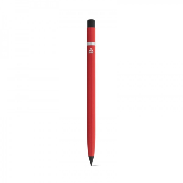 Pero bez atramentu s telom zo 100% recyklovaného hliníka. Vhodné na dlhodobé používanie bez nutnosti ostrenia. Vrch obsahuje gumu, ktorá ľahko vymaže napísané