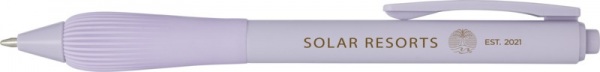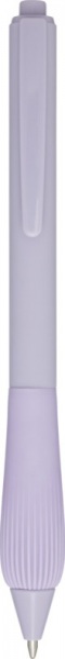Guľôčkové pero z recyklovaného plastu s pogumovaným telom a rukoväťou z TPR. Modrá náplň. Dĺžka písania: 1000 metrov. Rozmer hrotu: 1,0 mm.