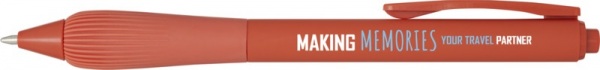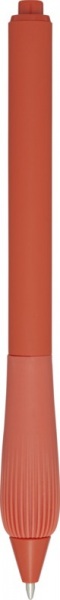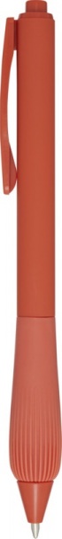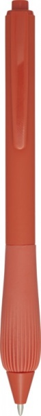 Guľôčkové pero z recyklovaného plastu s pogumovaným telom a rukoväťou z TPR. Modrá náplň. Dĺžka písania: 1000 metrov. Rozmer hrotu: 1,0 mm.