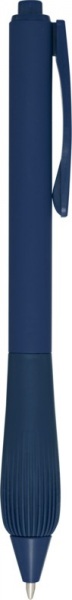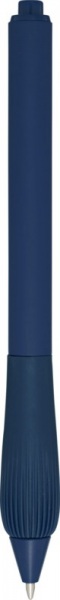 Guľôčkové pero z recyklovaného plastu s pogumovaným telom a rukoväťou z TPR. Modrá náplň. Dĺžka písania: 1000 metrov. Rozmer hrotu: 1,0 mm.