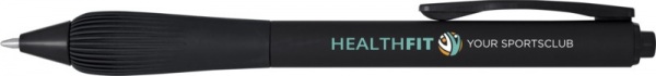 Guľôčkové pero z recyklovaného plastu s pogumovaným telom a rukoväťou z TPR. Modrá náplň. Dĺžka písania: 1000 metrov. Rozmer hrotu: 1,0 mm.