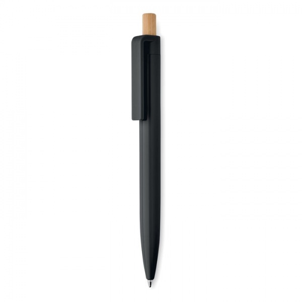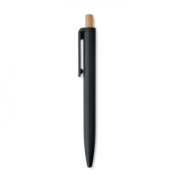 Guľôčkové pero z recyklovaného ABS s bambusovým tlačidlom. Modrá náplň.