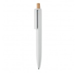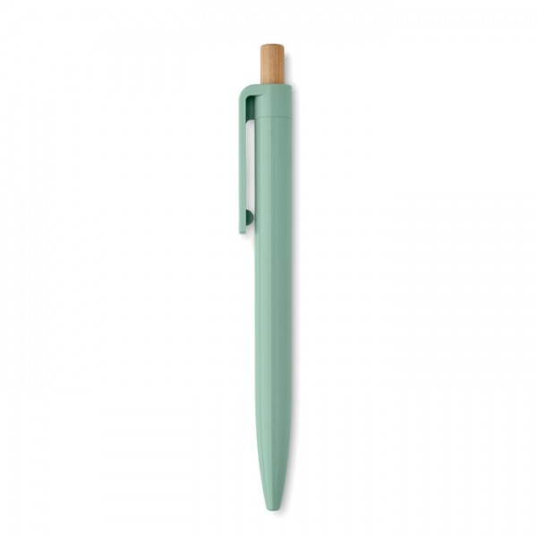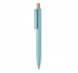 Guľôčkové pero z recyklovaného ABS s bambusovým tlačidlom. Modrá náplň.