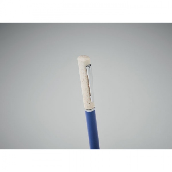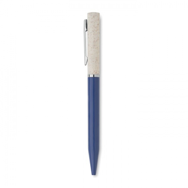 Guľôčkové pero má otočný mechanizmus a modrú náplň.
